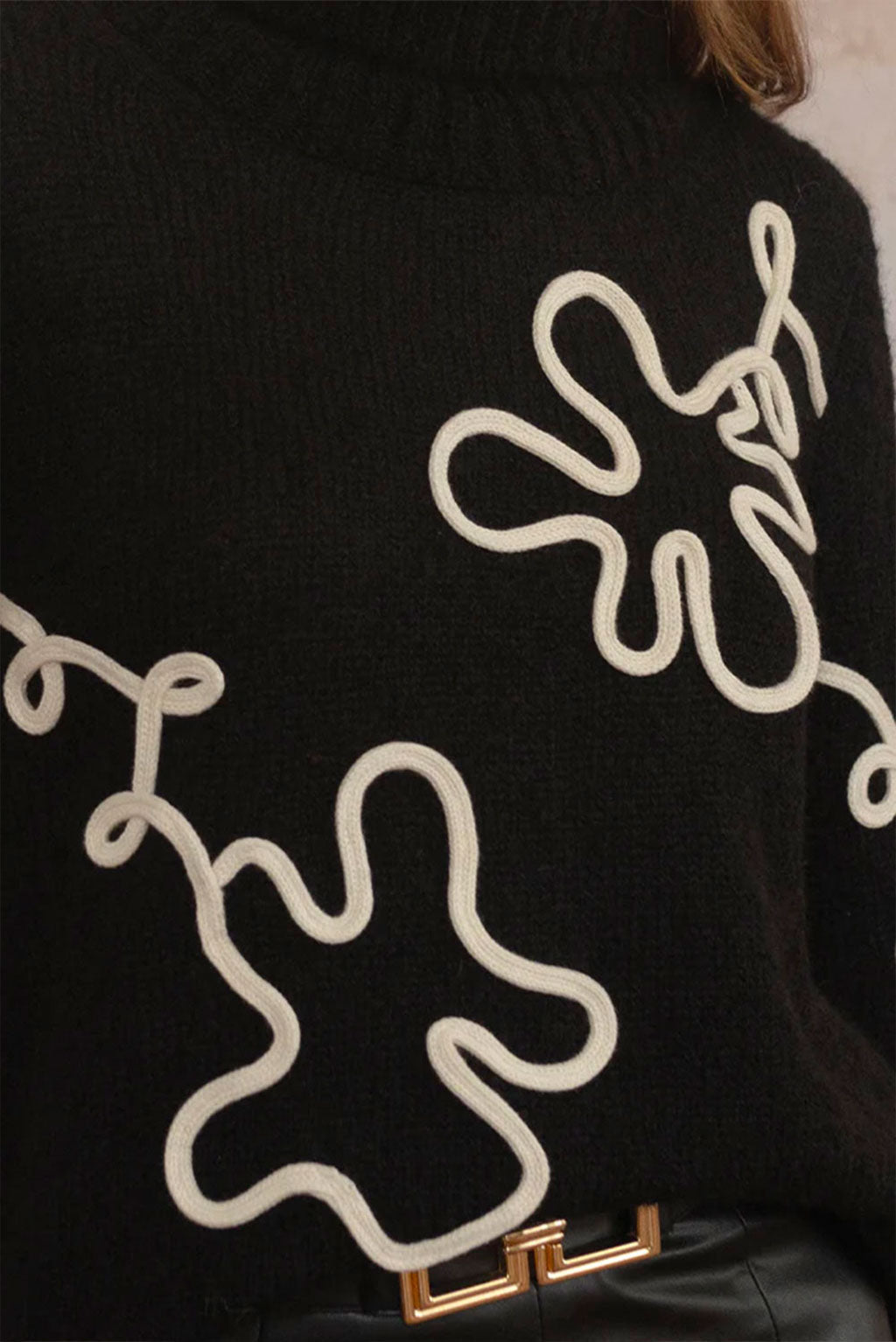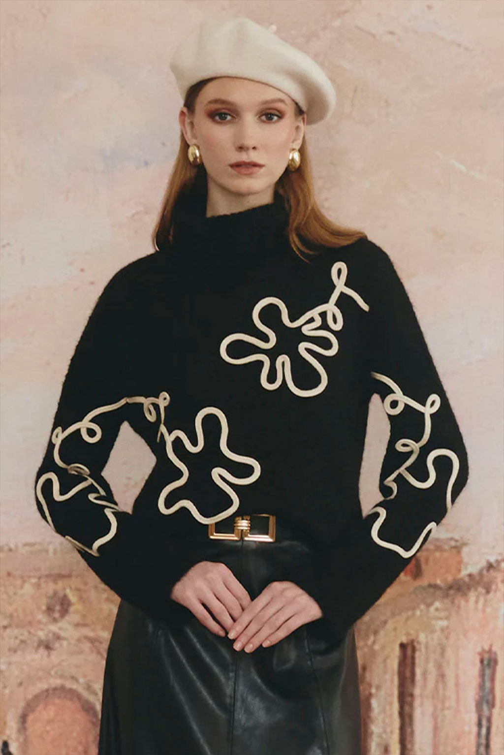 A striking blend of artistry and luxury, the Laila Alpaca Sweater is designed for those who appreciate standout fashion. Featuring an eye-catching abstract embroidery, this sweater transforms classic knitwear into a statement piece. This garment offers unparalleled warmth, breathability, and a plush, ultra-soft texture. Whether styled with structured trousers or a sleek skirt, the Laila Sweater brings effortless elegance to any wardrobe.