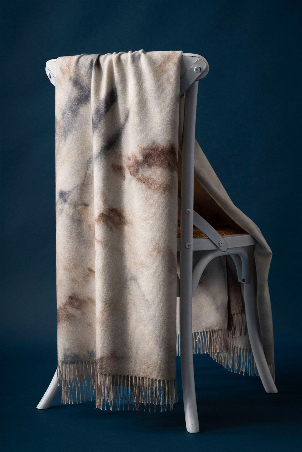 Wrap yourself in luxurious warmth with the Romance Baby Alpaca Blanket, a beautifully handcrafted piece designed for ultimate softness and comfort. Its artistic, cloud-like pattern and delicate fringed edges create an elegant aesthetic, making it a stylish addition to any home.