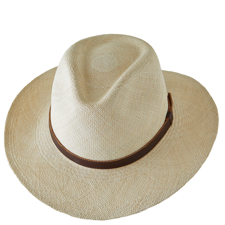 Diese außergewöhnlichen Hüte, die den ganzen Weg aus Ecuador mitgebracht wurden, bestehen aus Toquilla-Stroh, das von Hand in Stränge gespalten wird, die nicht viel dicker als Garn sind, und so fein gewebt wird, dass die Panamahüte aussehen, als seien sie aus Leinen.