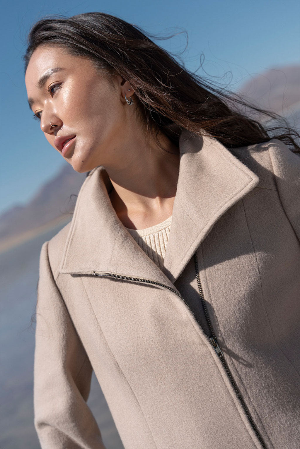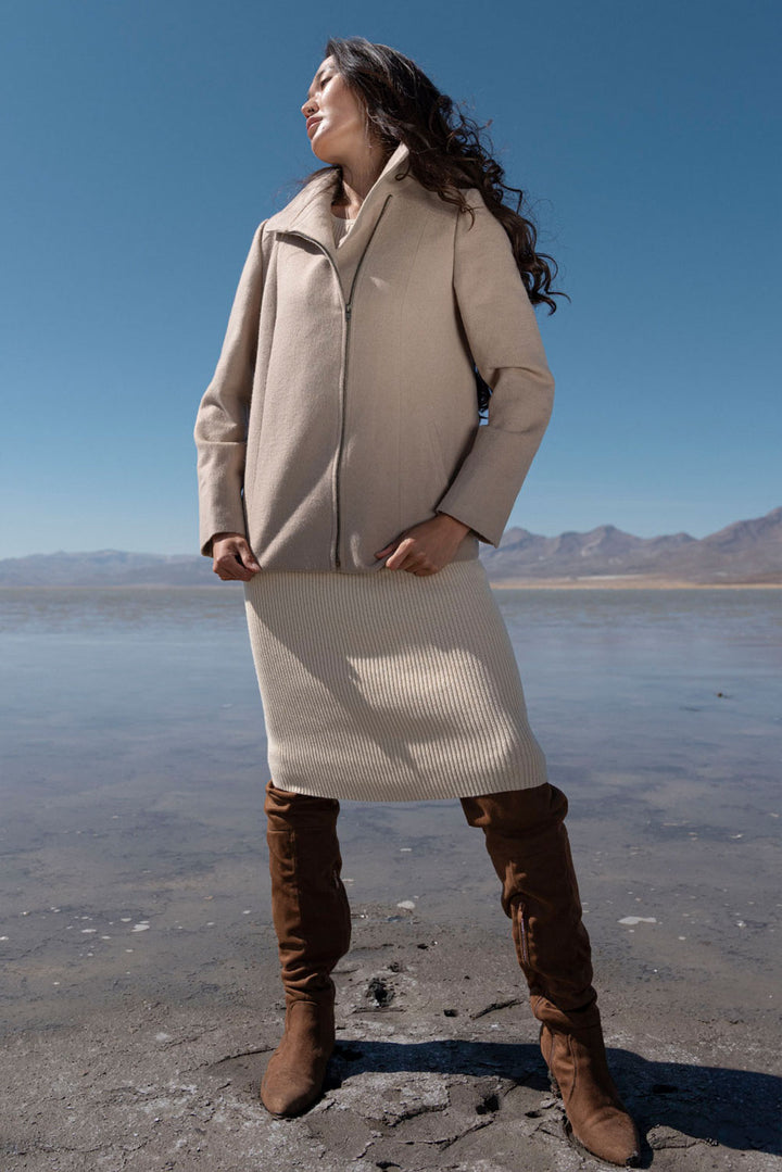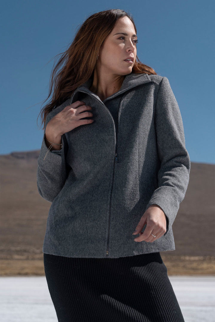 Designed for effortless sophistication, the Anette Jacket features a clean silhouette with a structured high collar and smooth zip closure for a sleek finish. Its naturally warm and breathable fabric offers lasting comfort through shifting seasons, while the minimalist design makes it endlessly versatile.