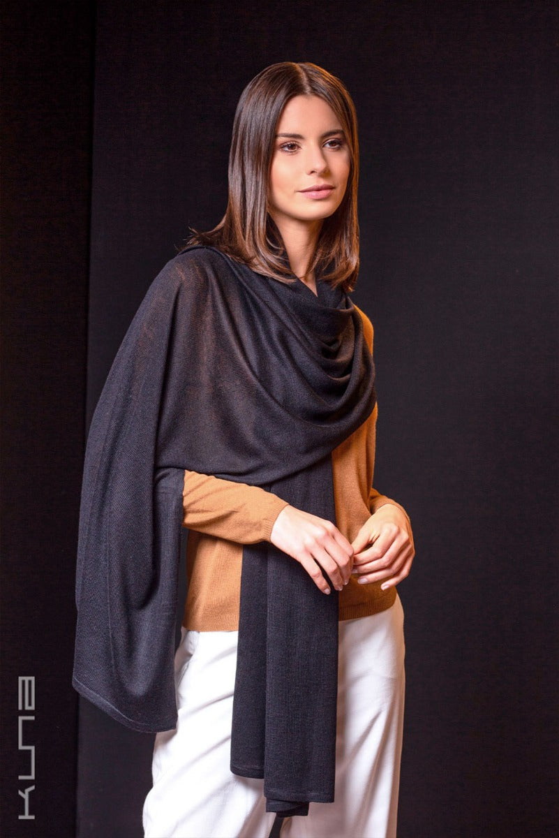 Dieser wunderschöne Schal besteht zu 100 % aus Vikunja – er ist gestrickt und nicht gewebt. Vikunja ist die feinste Tierfaser der Welt. Luxuriöses Vikunja ist extrem leicht, unglaublich weich und bietet unvergleichliche Wärme.