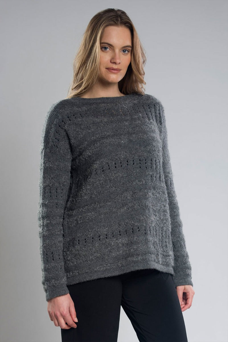 Superweicher, gestrickter Infinity-Schal mit Lama-Motiv aus Bouclé-Garn, der sich toll anfühlt und sehr leicht ist.
