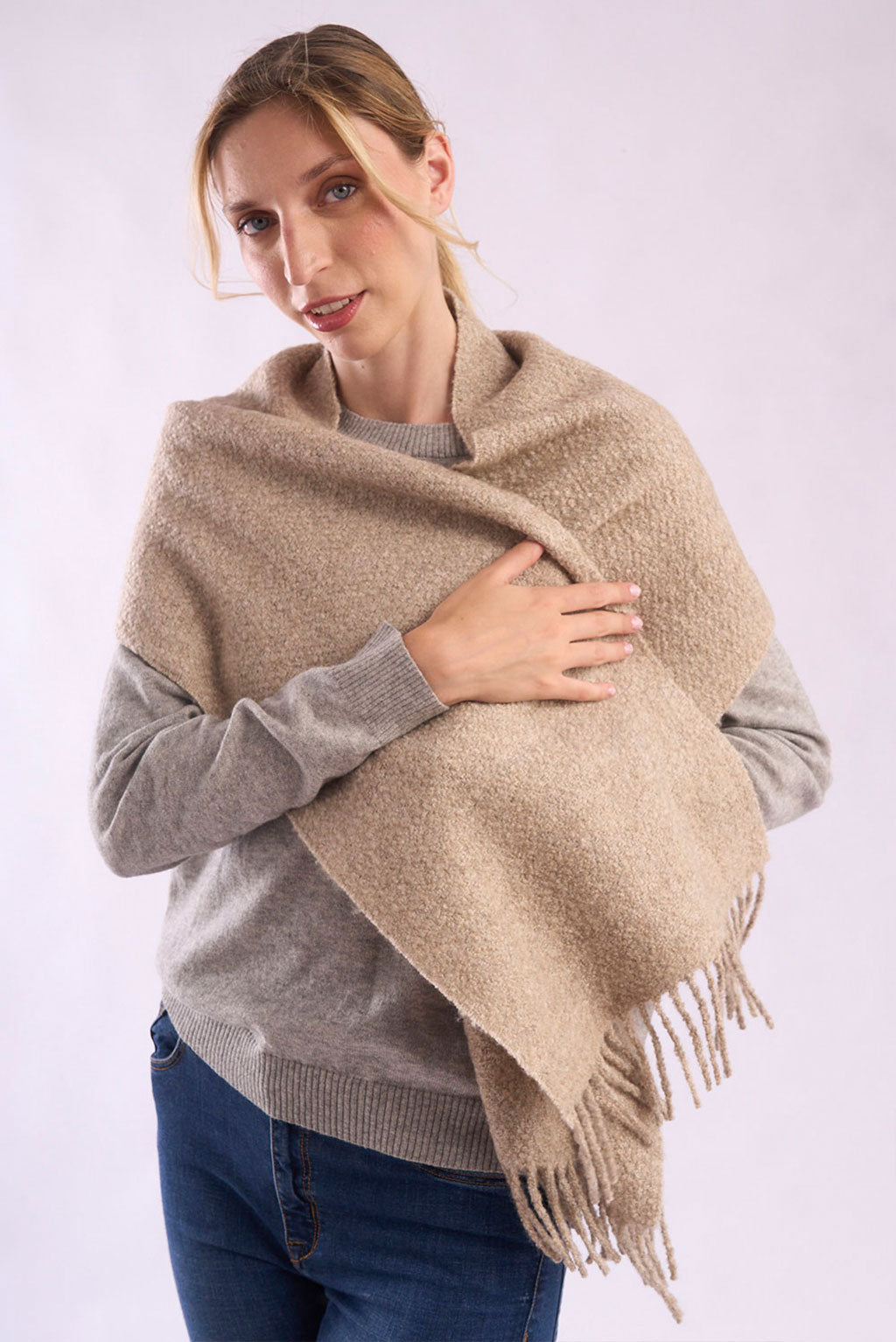 Klassischer, einfarbiger Schal aus Babyalpaka und Seide. Er verfügt über ein kompliziertes Strickmuster, das Tiefe und optisches Interesse verleiht. Egal, ob Sie einen kühlen Abendspaziergang genießen oder einfach Ihrem Alltagsoutfit einen Hauch von Eleganz verleihen, dieser Schal wird Ihr vielseitiger Begleiter sein. Hüllen Sie sich in Komfort und Stil ein