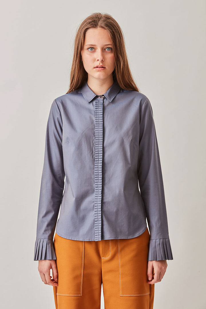 Pima-Baumwoll-Popeline mit klassischer Passform, mit Falten an Ärmeln und Brust.