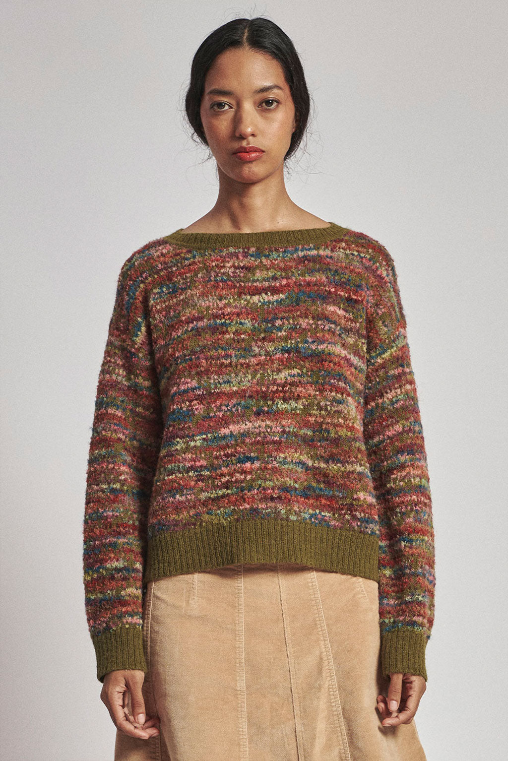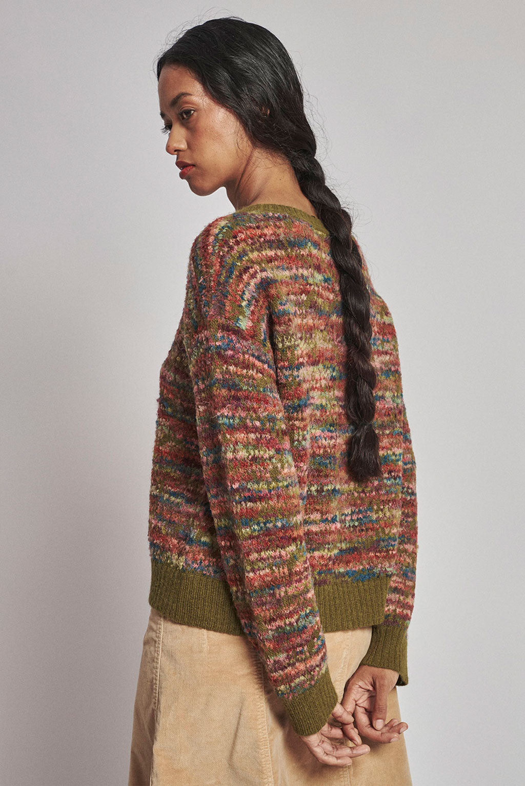 Der Forest Alpaca Sweater ist eine gemütliche und stilvolle Ergänzung für jede Garderobe. Sein mehrfarbiges Streifenmuster und die gerippte Textur verleihen jedem Outfit eine lebendige Note. Ein herausragendes Stück für Ihre Garderobe.