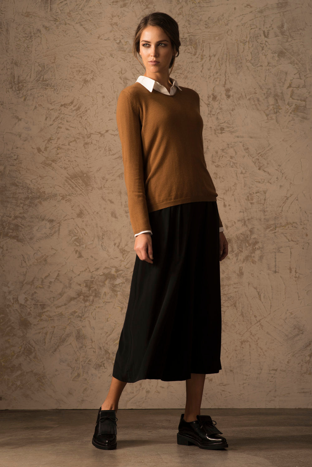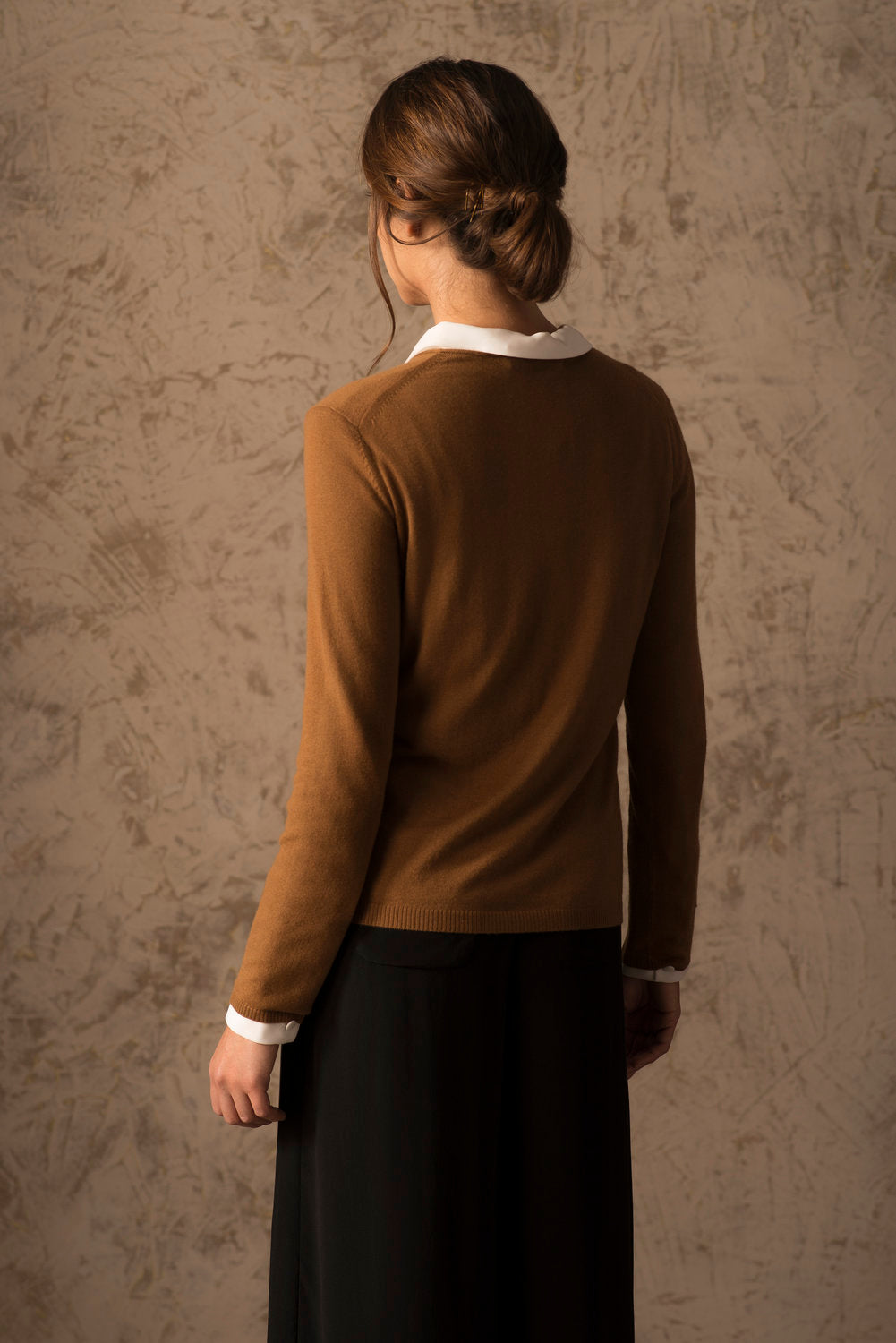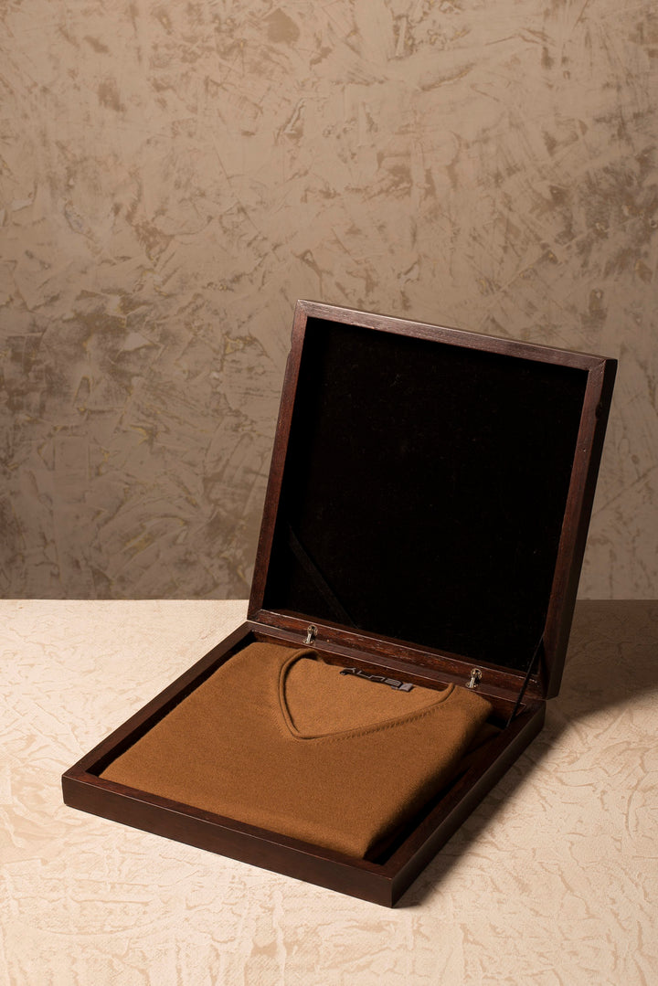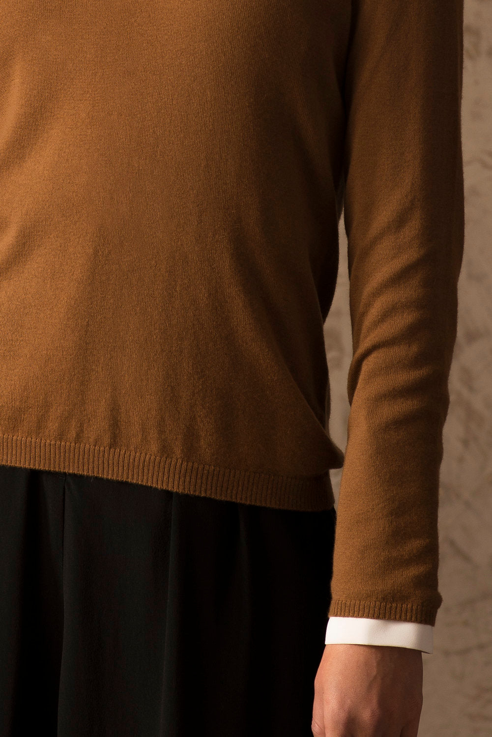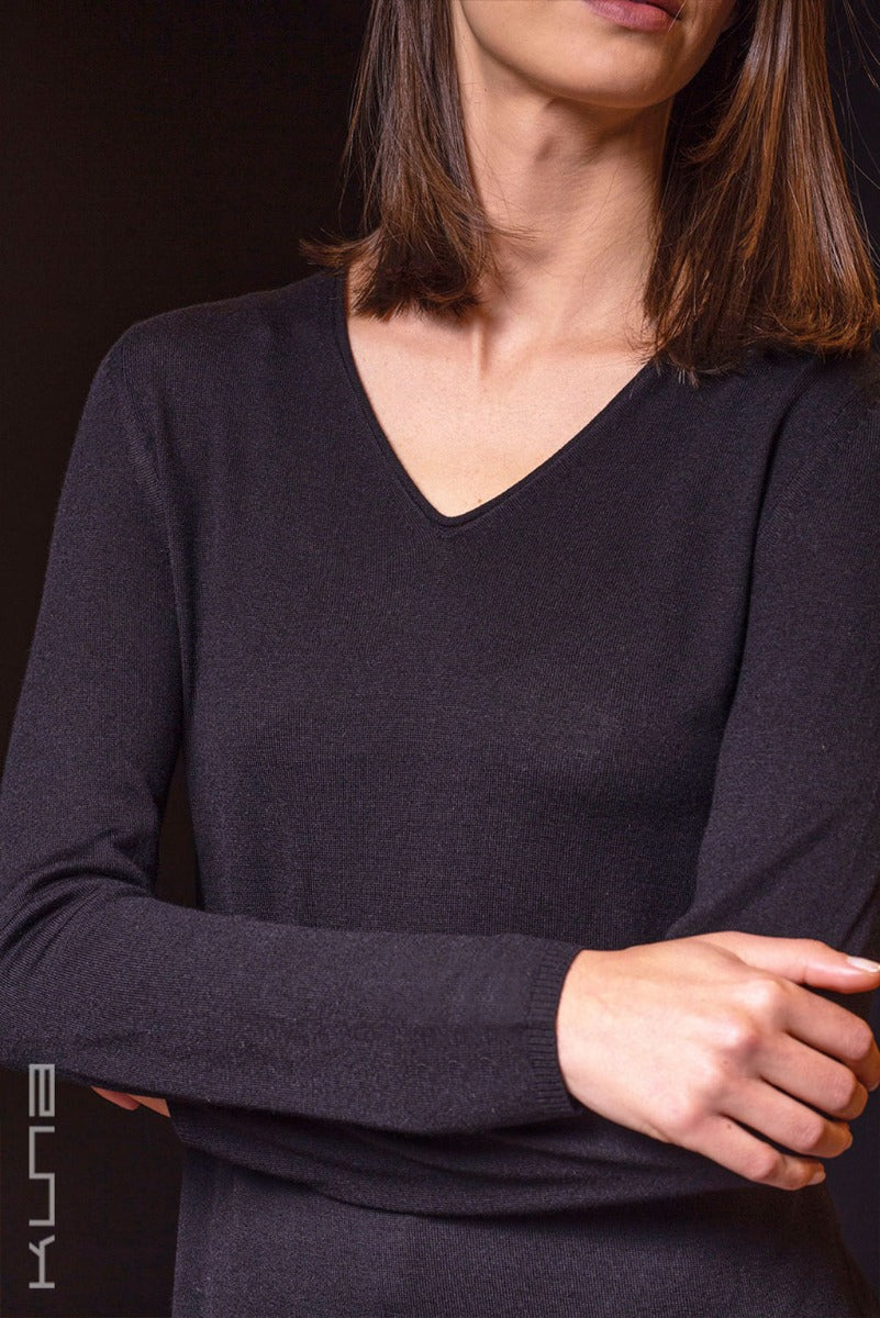 Ein sehr luxuriöser Damenpullover mit V-Ausschnitt aus 100 % gestricktem Vikunja, der feinsten, weichsten und leichtesten Naturfaser der Welt. Er ist extrem leicht, aber dennoch warm und fühlt sich unglaublich weich an. Ein perfekter Pullover zum Entspannen oder für den Lagenlook.