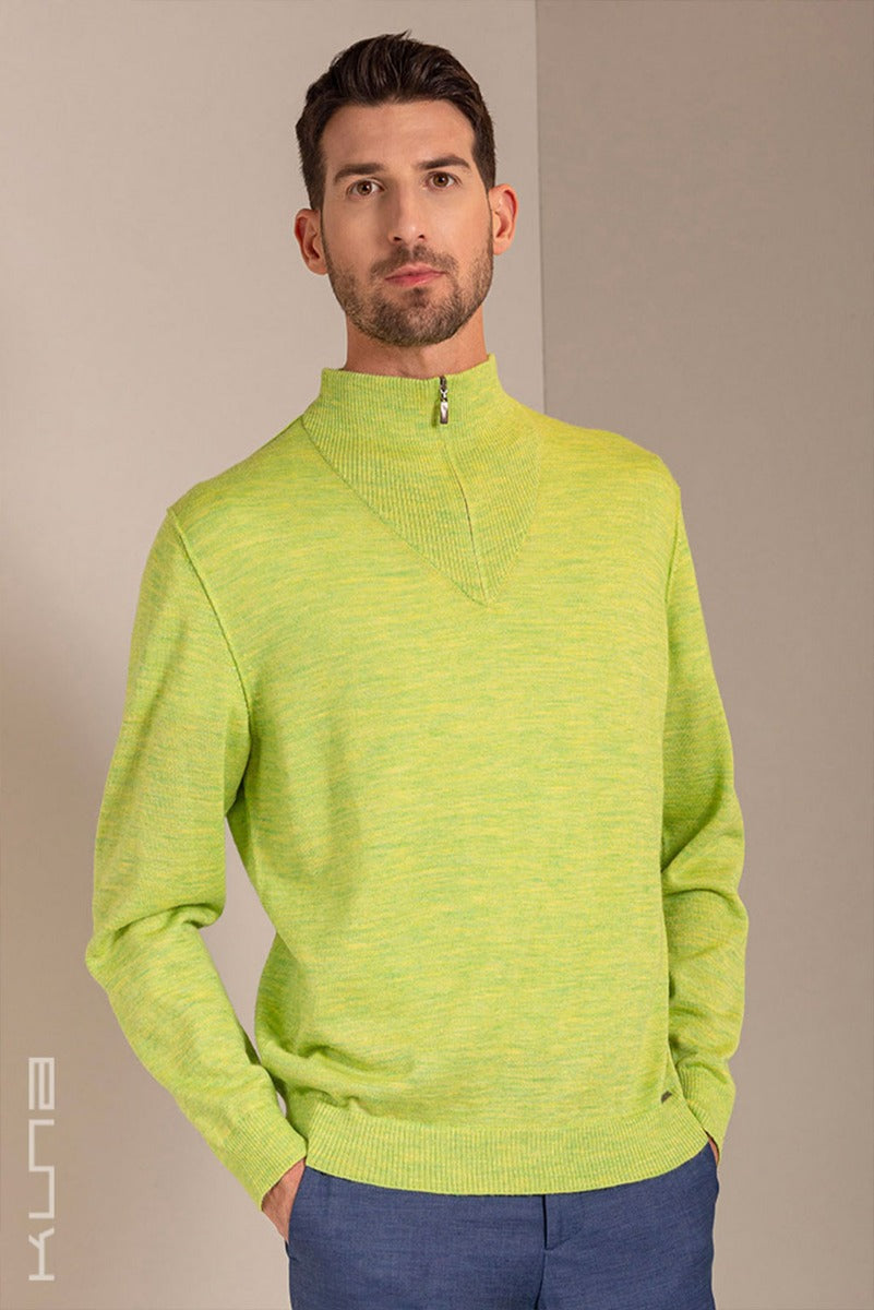Klassischer und lustiger Pullover aus Babyalpaka mit halbem Reißverschluss in leuchtenden Farben. Weich und langlebig. Der halbe Reißverschluss ist auf maximale Vielseitigkeit ausgelegt, sodass er allein oder über einem Hemd großartig aussieht.