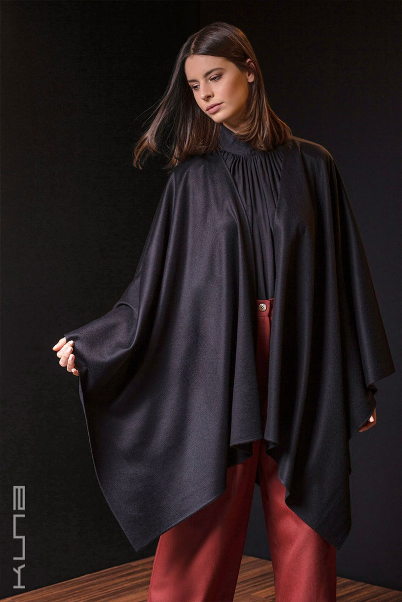 Ein klassischer langer Umhang aus 100 % Vikunja. Das Höchstmaß an Eleganz und Luxus. Vikunja ist die feinste Tierfaser der Welt. Extrem leicht, unglaublich weich und bietet unvergleichliche Wärme.