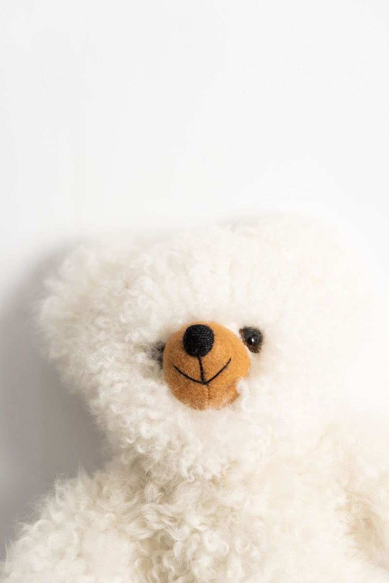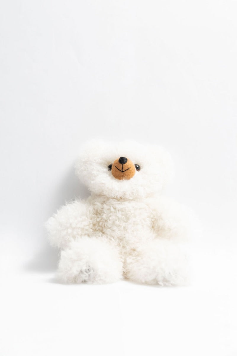 Weißer Teddybär aus Babyalpakafell - Mittelgroß