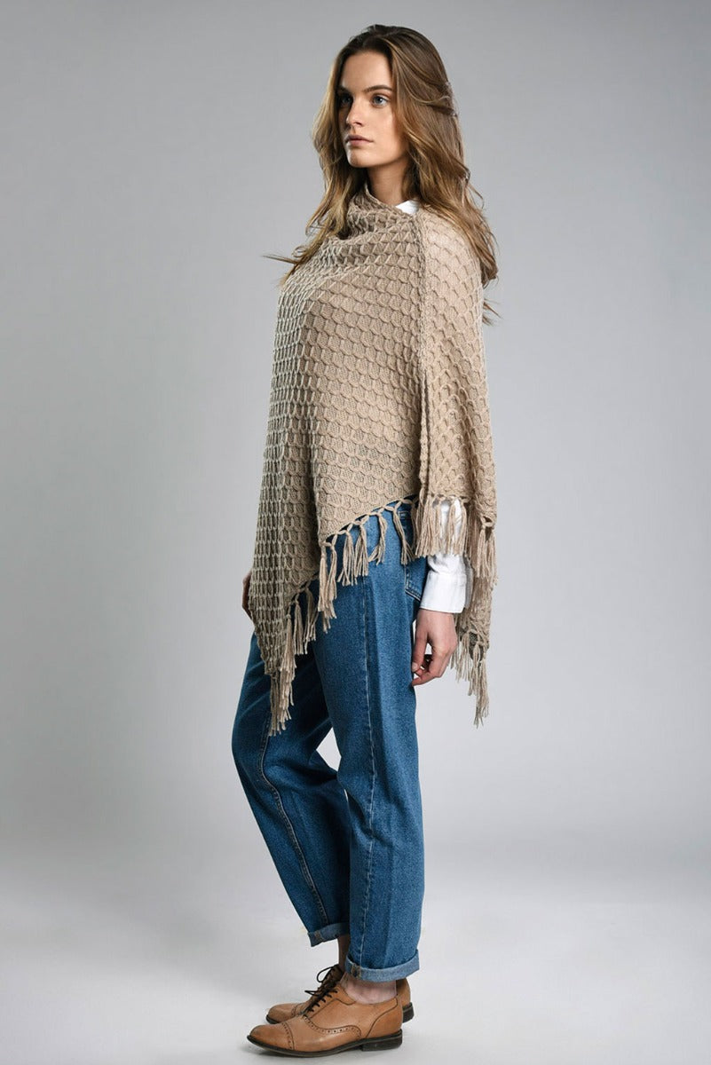 Embrace the luxurious warmth and style of the Ananda 100% Baby Llama Poncho. Made from incredibly soft and plush baby llama wool, this poncho offers exceptional warmth and a cozy feel. Its sophisticated yet minimalistic design, adorned with handcrafted fringes, adds an elegant touch to any outfit. Lightweight yet warm, the Ananda Poncho is perfect for layering and can effortlessly transition from casual to formal wear.