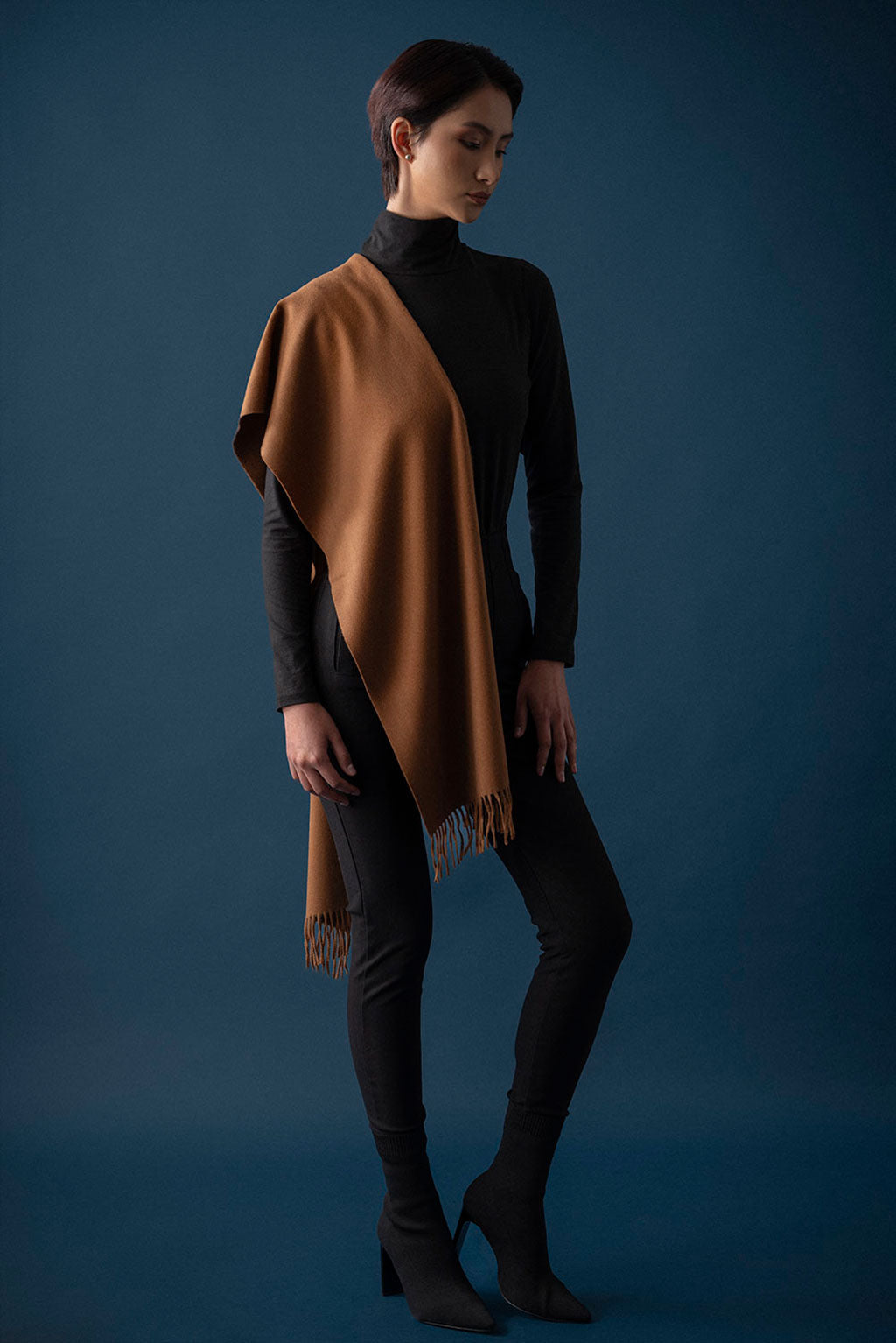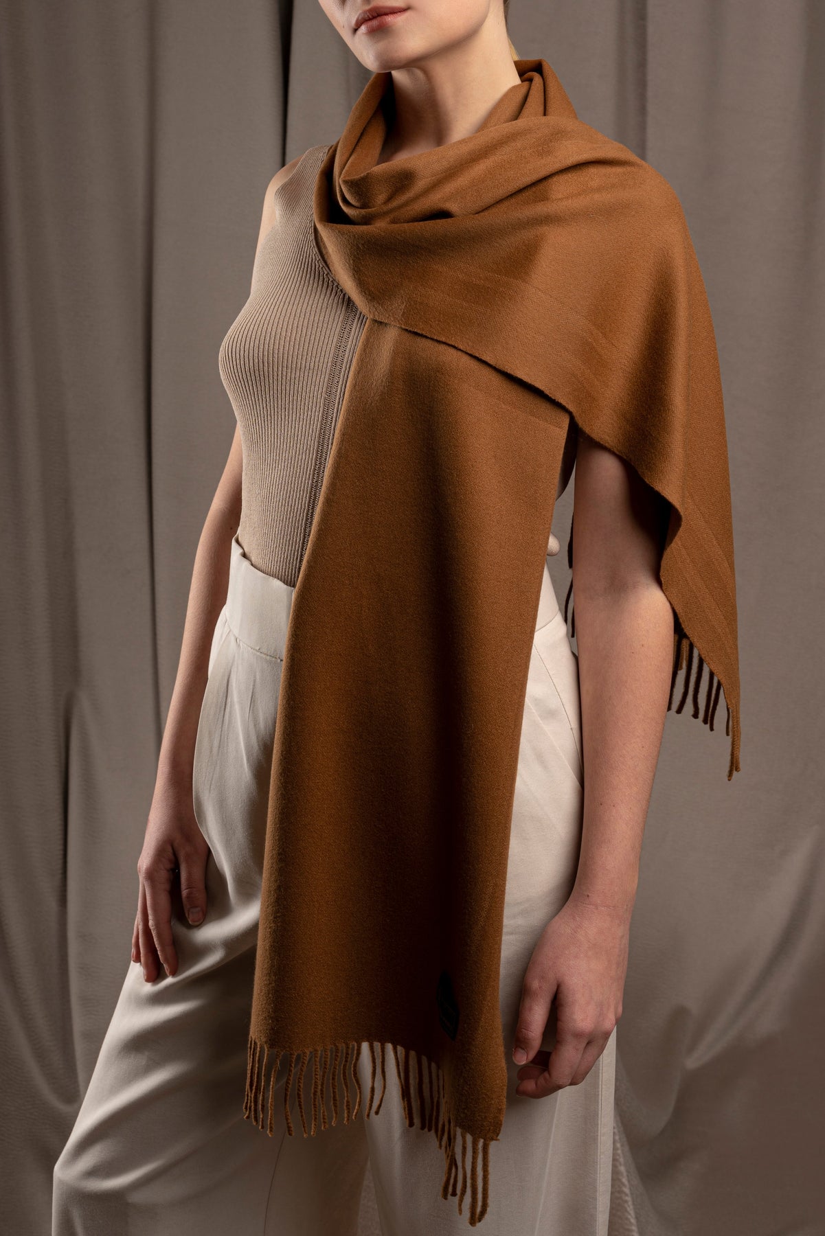 This 100% vicuna scarf is made of the finest and rarest animal fiber in the world. Vicuna fiber is extremely light and provides unrivaled softness and warmth. It features a rich, warm brown hue that adds a touch of sophistication to any outfit. The delicate fringes at the ends enhance its elegant drape, making it a perfect accessory for both formal and casual occasions.