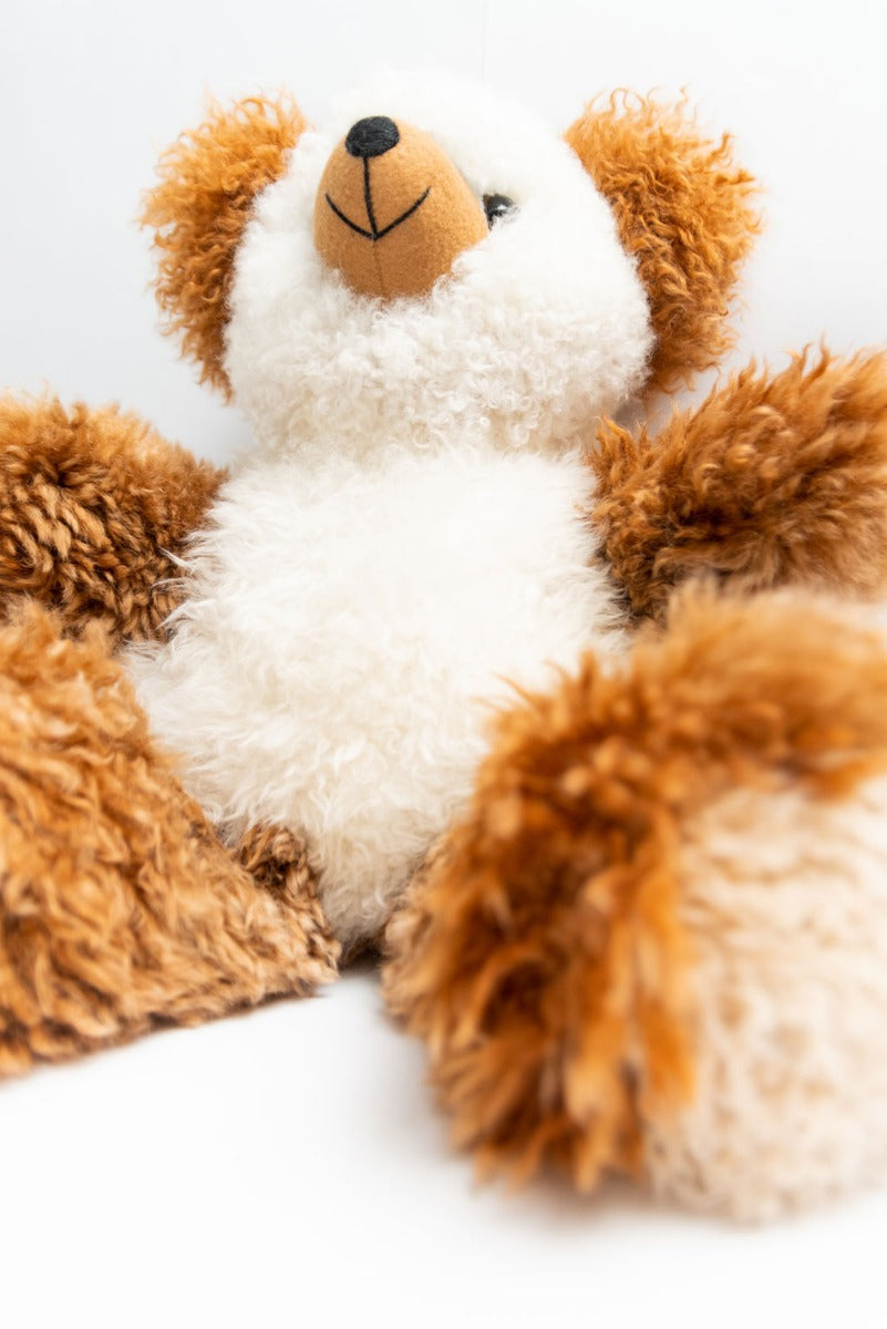 Cuddly Teddy Bear made of 100% natural and ethically-sourced Baby Alpaca, which is incredibly soft. It’s like touching a cloud! These are all individually handmade by artisans in Peru and may differ in size