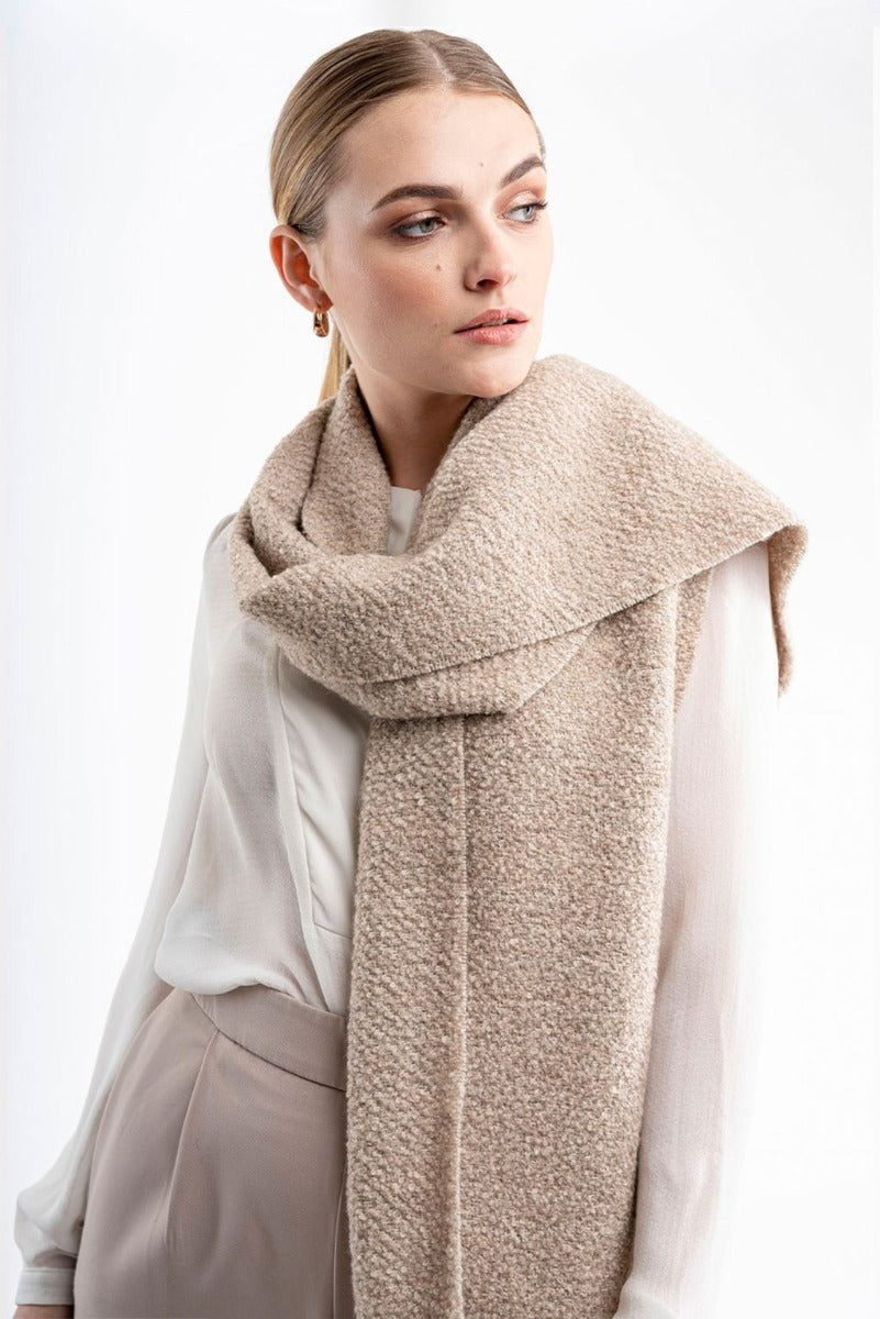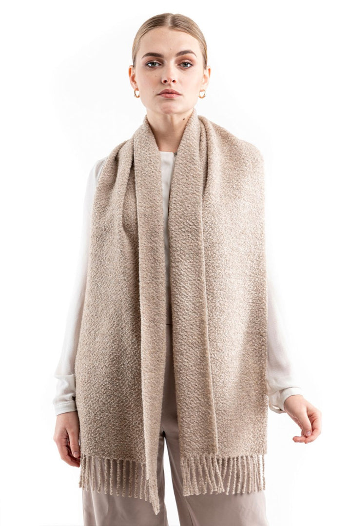Classic solid color Baby Alpaca & Silk scarf. It features an intricate knit pattern that adds depth and visual interest. Whether you’re enjoying a chilly evening walk or simply adding a touch of elegance to your everyday ensemble, this scarf will be your versatile companion. Wrap yourself in comfort and style