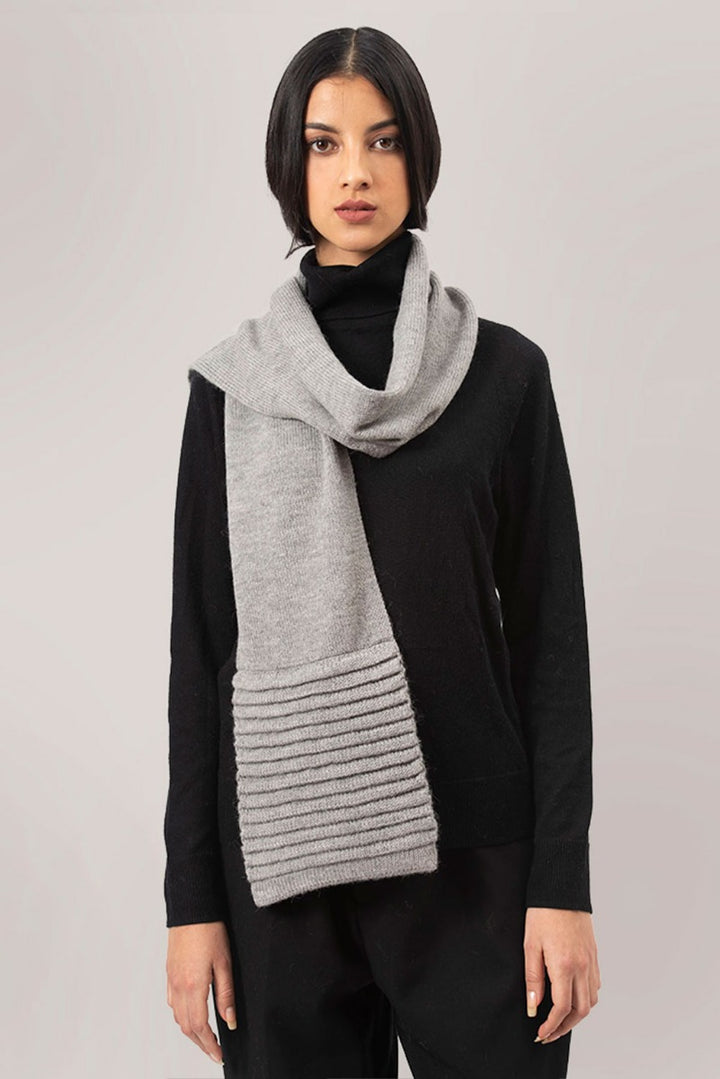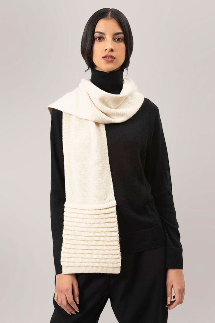 Beautiful knitted 100% Baby Alpaca Scarf with ribbed ends. The chunky knit you warm and stylish in any weather. Made from sustainable 100% Baby Alpaca.
