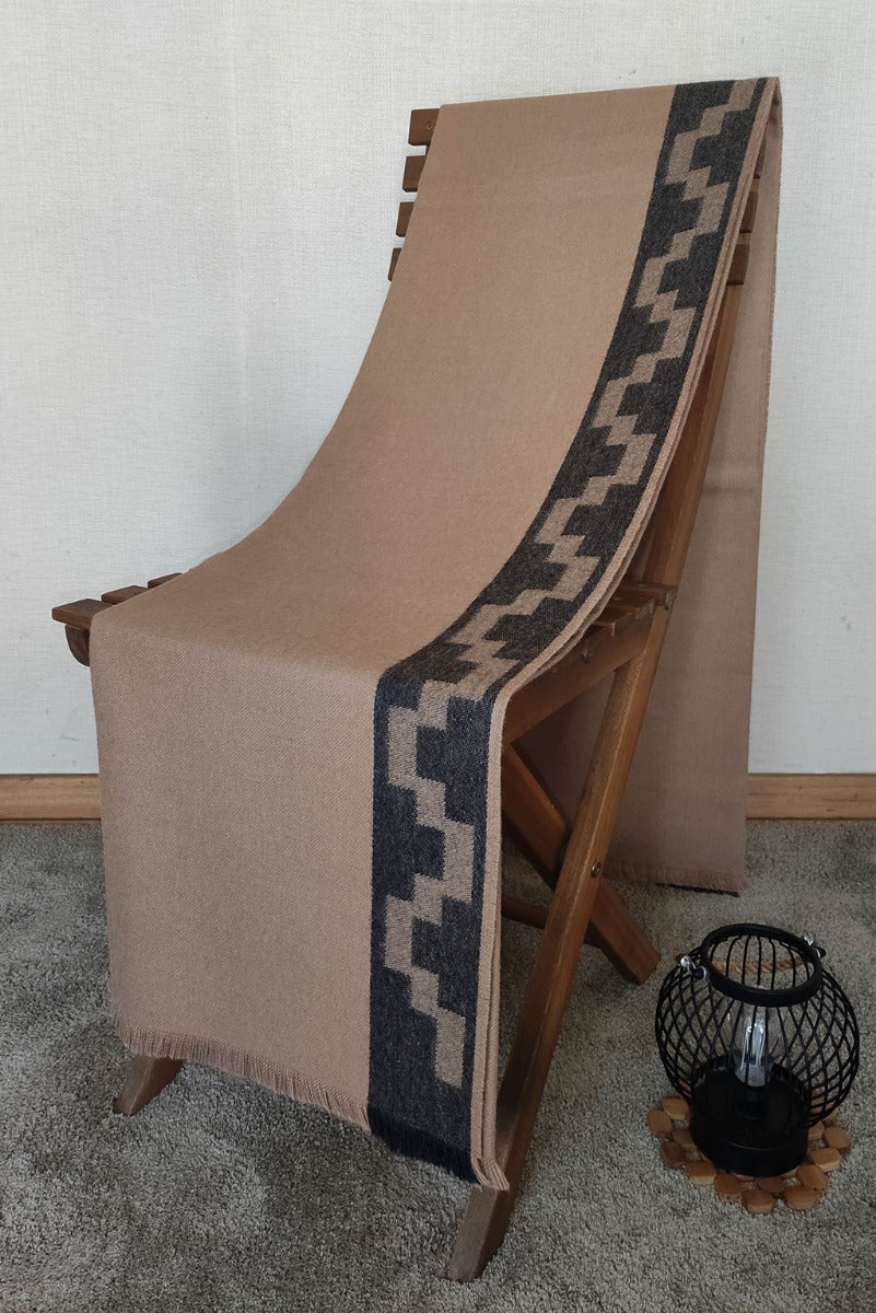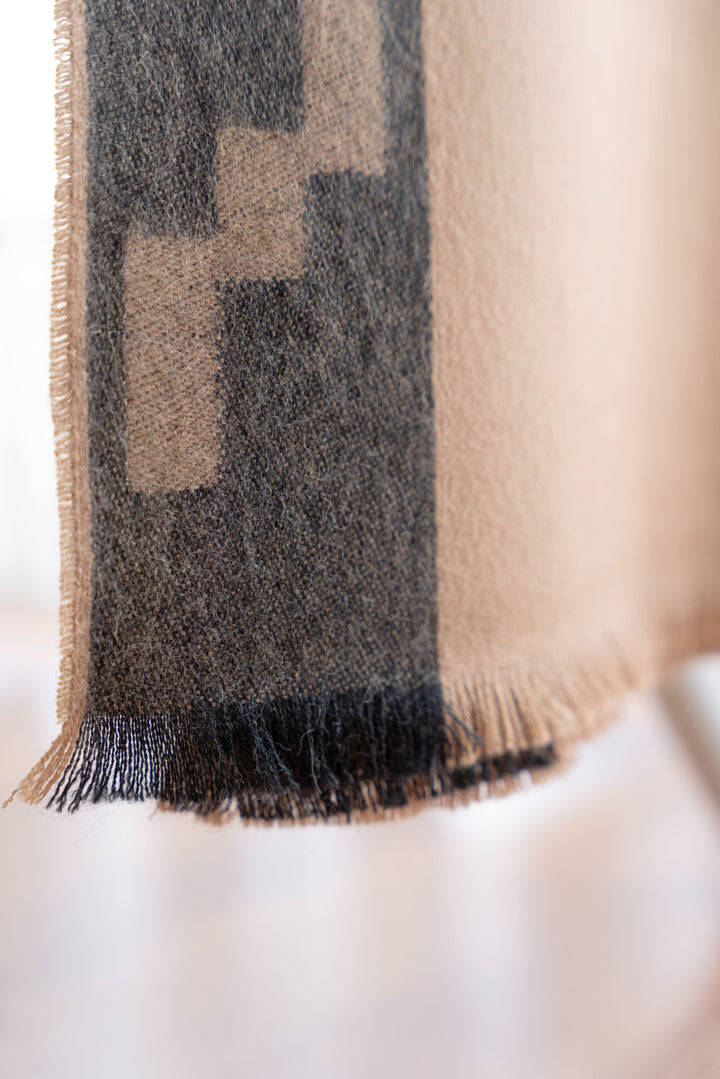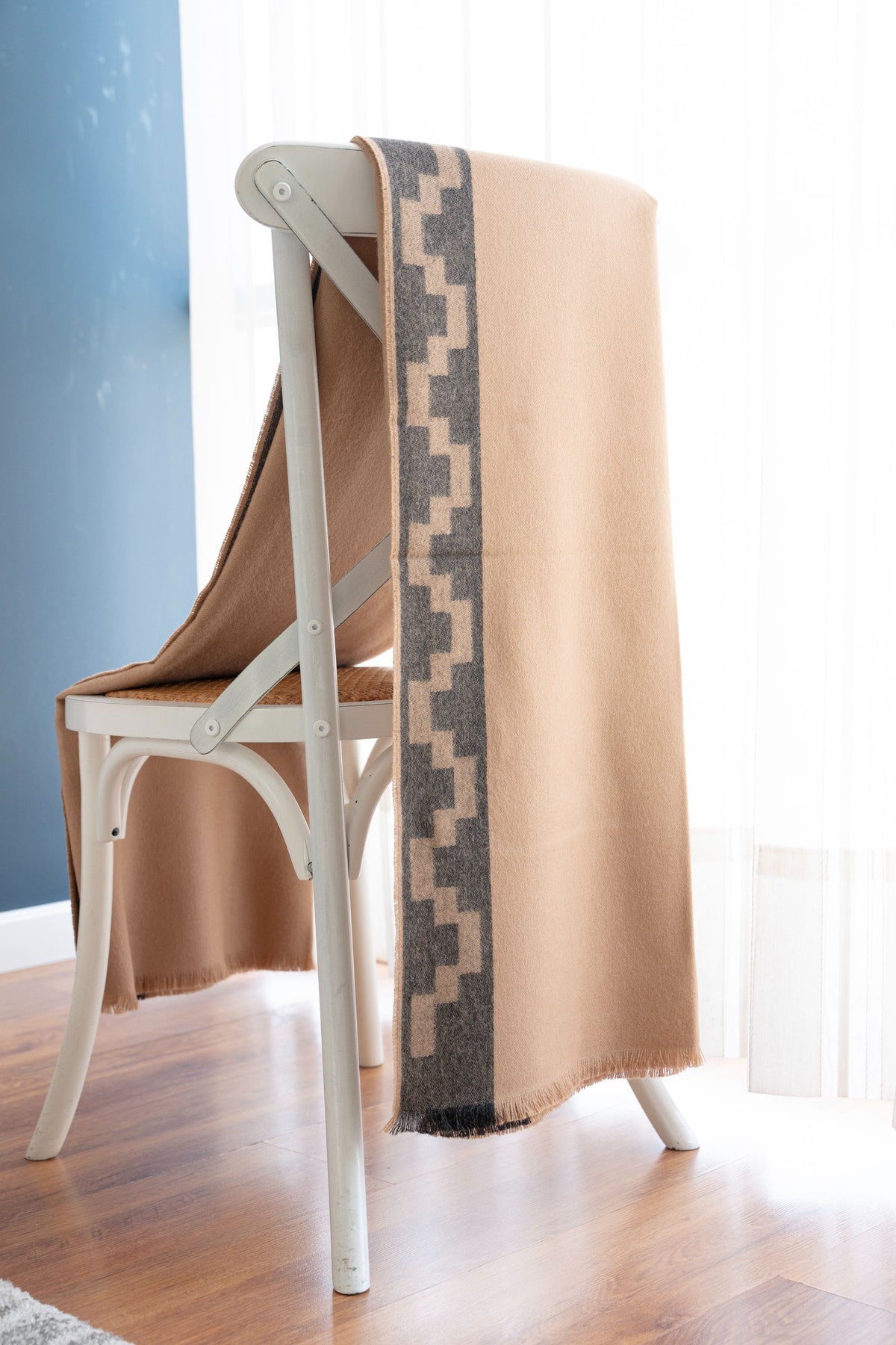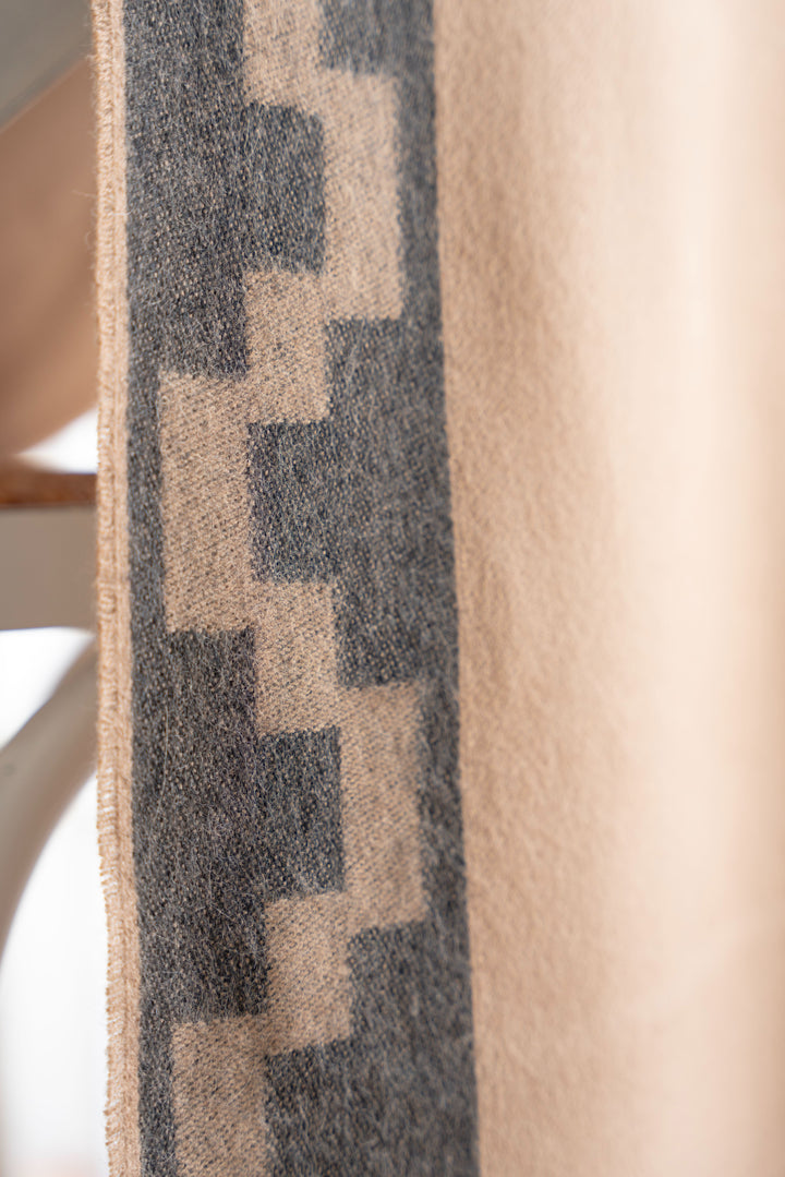 100% Baby Alpaca Throw with a subtle Peruvian motif available in multiple color combinations to match your home.