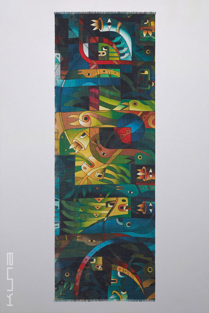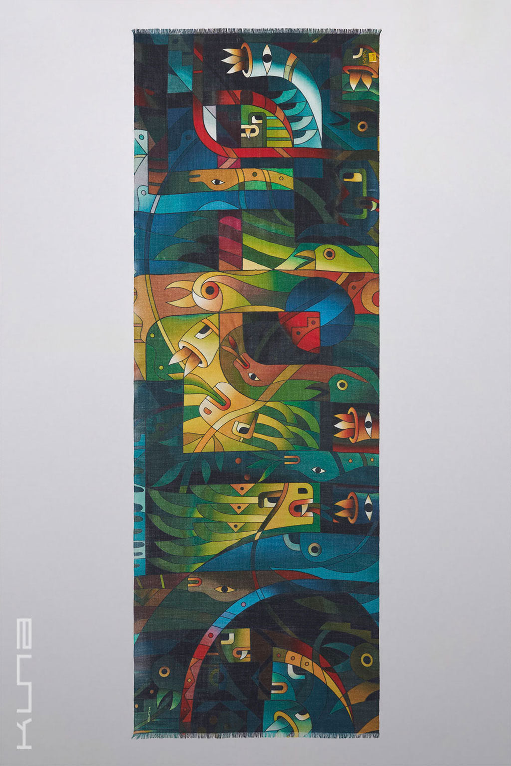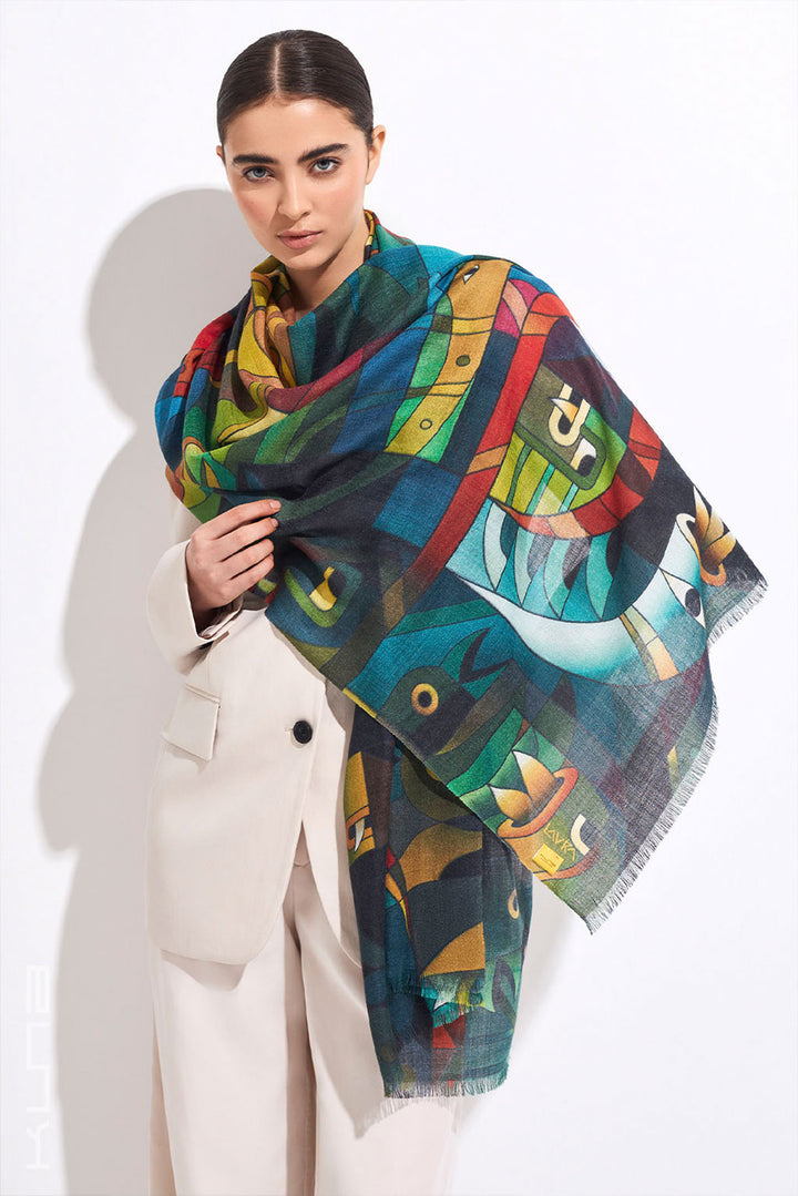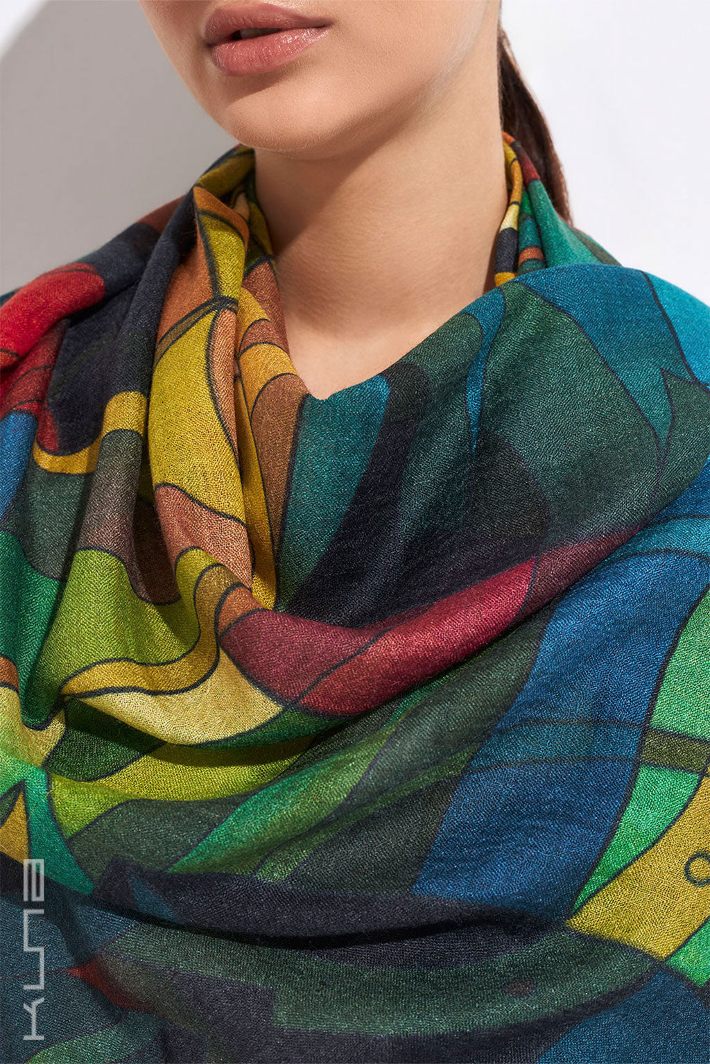 Let color and symbolism wrap around you in the Heart’s Abode Shawl. With its bold, geometric pattern and vibrant palette, this shawl invites warmth, meaning, and creative expression into your wardrobe. Designed to captivate and comfort, it drapes effortlessly offering a blend of art and elegance with every wear.