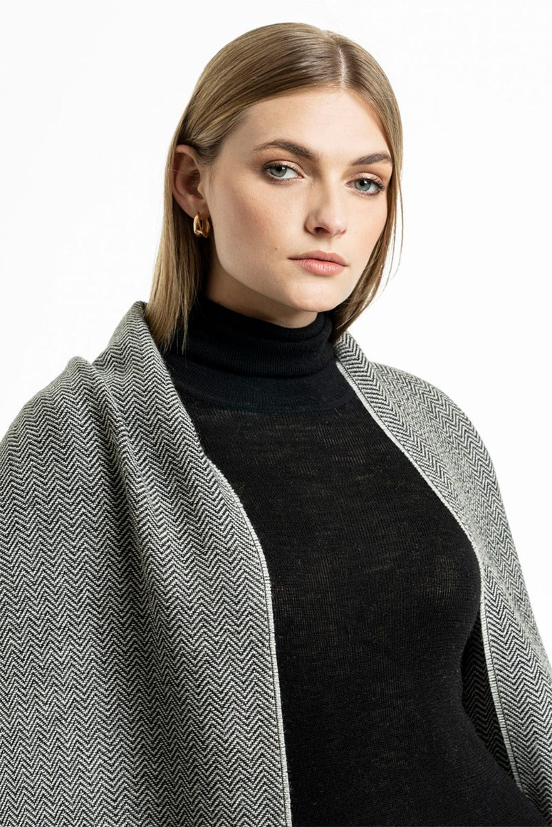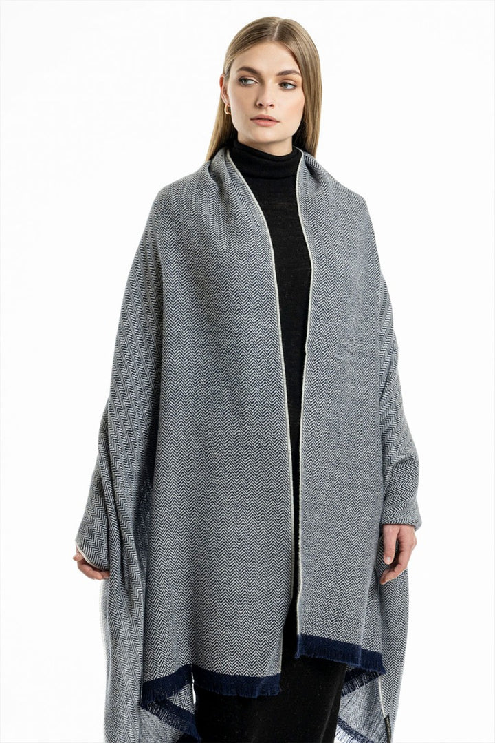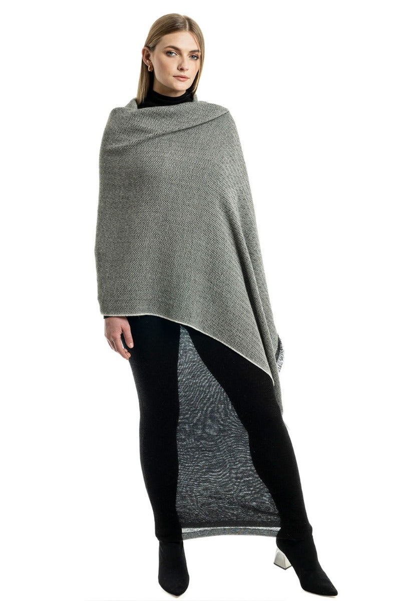 Wrap yourself in the refined elegance of our Herringbone Baby Alpaca Shawl. This luxurious shawl showcases a timeless herringbone pattern, offering a sophisticated touch to any outfit. Crafted from ultra-soft baby alpaca wool, it provides warmth and unparalleled comfort. The delicate fringes add a stylish finish, making this shawl a versatile accessory, perfect for any occasion.
