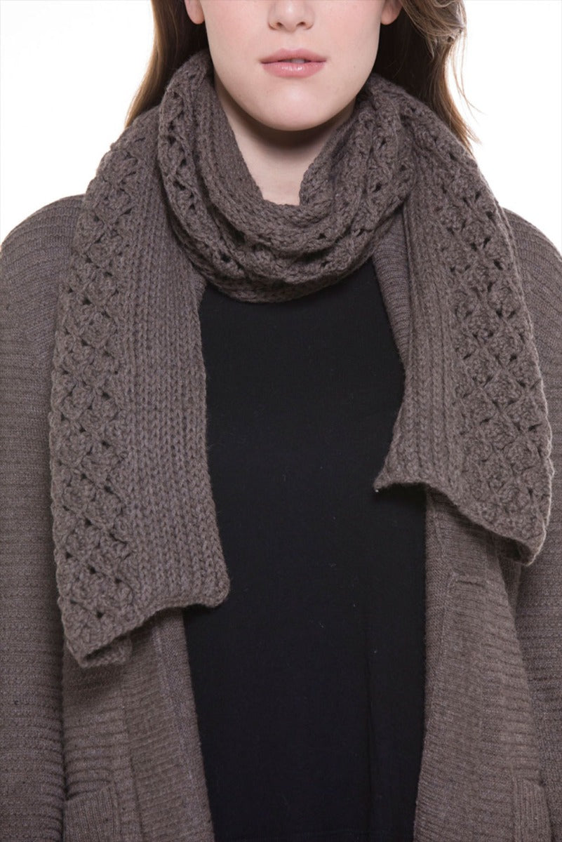 Hand-knitted 100% Baby Llama Scarf with intricate cluster stich pattern. A true standout piece. Match it with the Ilian Cardigan.
