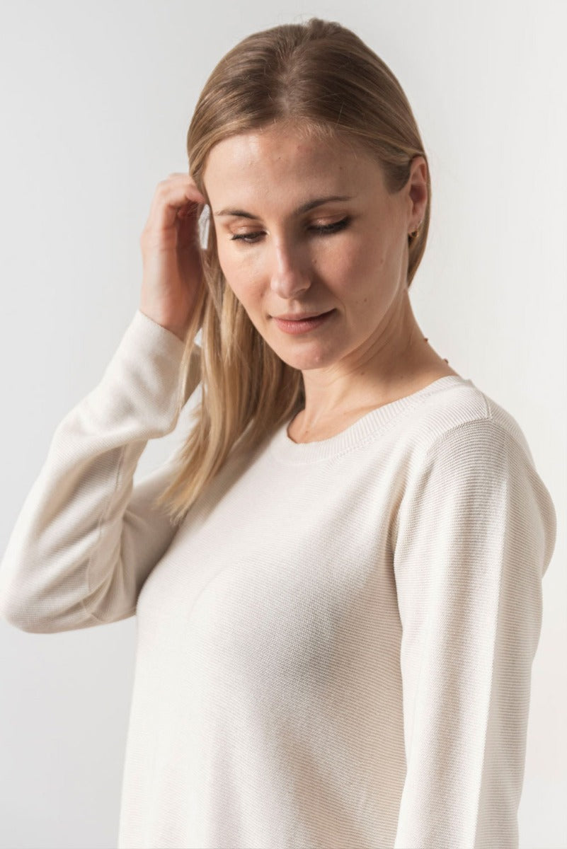 Beautiful crew-neck sweater made from super soft sustainable cotton.