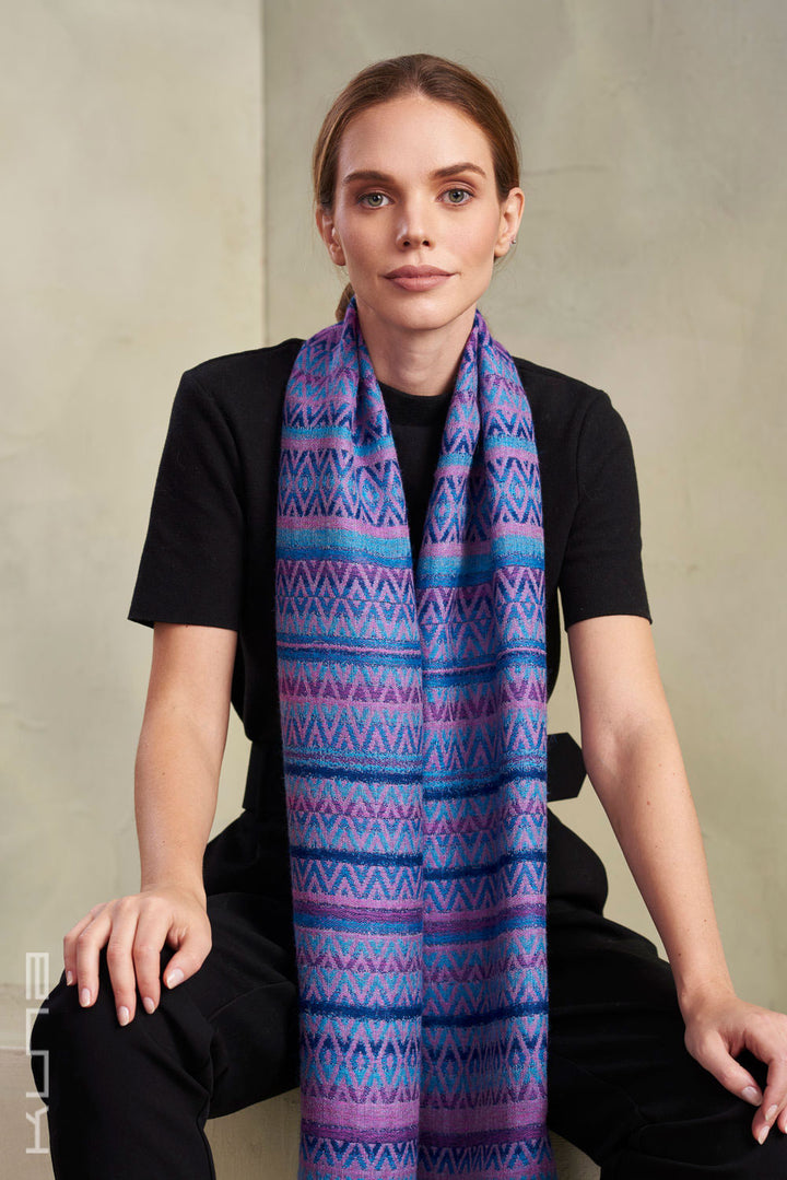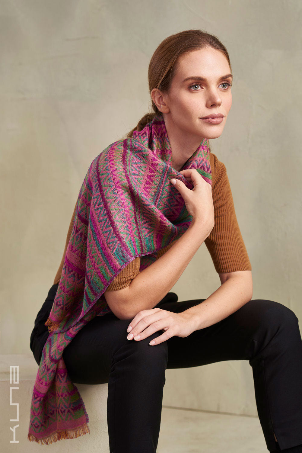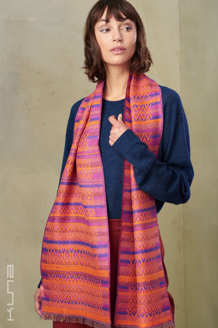 The perfect accessory for this season. The magical composition of colors and figures is inspired by Peruvian "Retablos", making this scarf a leading piece in any look.