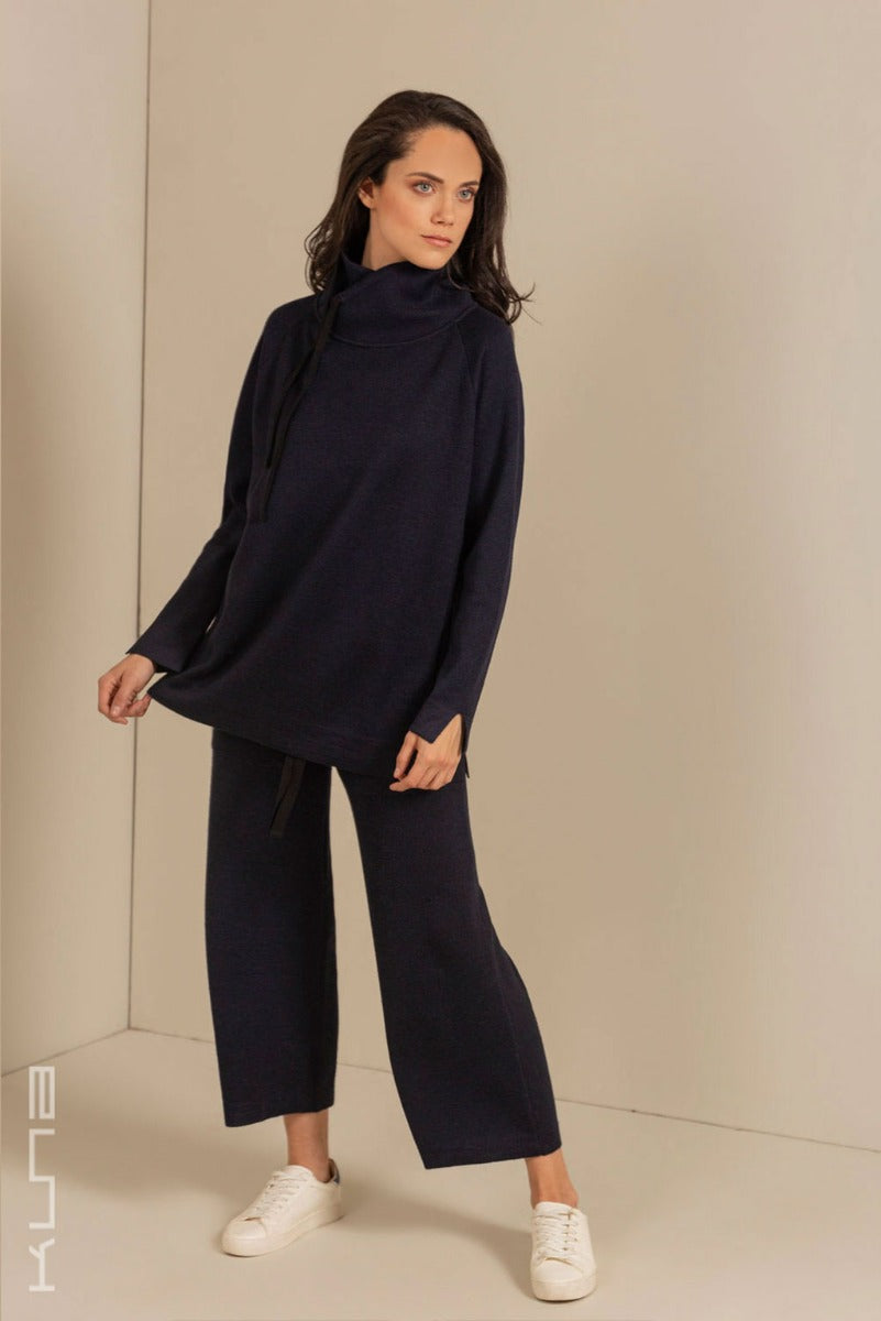 Splendid Sweater made of natural fibers of Baby Alpaca, Silk and Cotton. Lightweight, comfortable, and warm, this garment is perfect for home wear. Baby Alpaca is an especially soft grade of Alpaca. Alpaca fiber stands out for being as soft as Cashmere, but warmer, lighter and more durable. Alpaca is also water repellent and keeps you warm even when wet. Pair with one of the pants from the Kuna Relax Collection and you are sure to stay warm, comfortable & stylish in any setting.